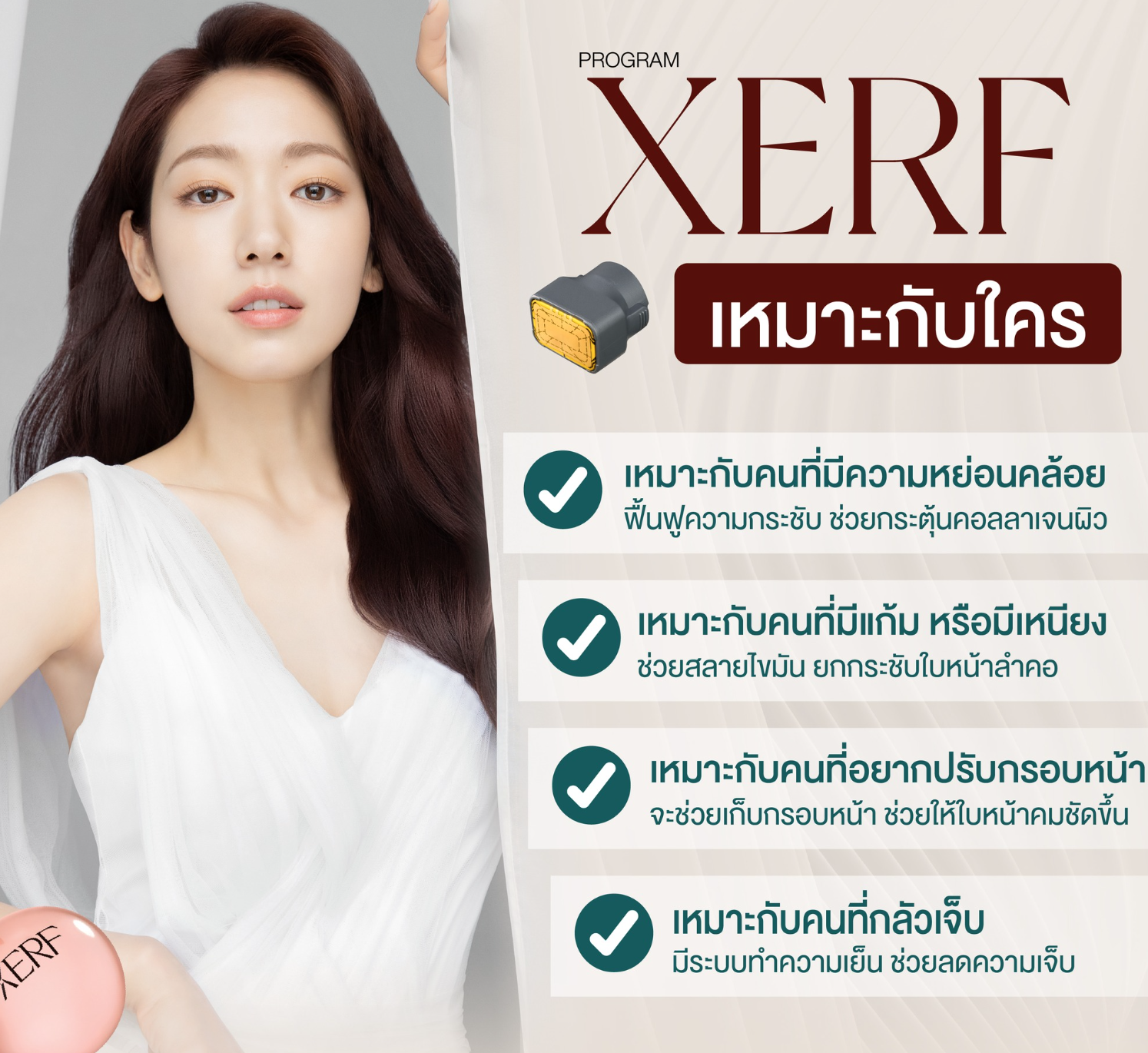 ช่วงหลังมานี้ หลายคนเริ่มพูดถึง โปรแกรม XERF (เซิร์ฟ) มากขึ้น โดยเฉพาะในวงการความงามเกาหลี หนึ่งในเหตุผลที่ทำให้เทคโนโลยีนี้ได้รับความสนใจ โดยมีนักแสดงเกาหลีอย่าง พัคชินฮเย (Park Shin-hye) หรือที่แฟนคลับไทยเรียกว่า “น้องผัก” ร่วมโปรโมทในต่างประเทศ ซึ่งเธอเป็นนักแสดงที่หลายคนจดจำภาพหน้าเด็ก ผิวสวยเเละดูเป็นธรรมชาติอยู่เสมอ (ทั้งนี้ ผลลัพธ์ขึ้นอยู่กับสภาพผิวของแต่ละบุคคล)