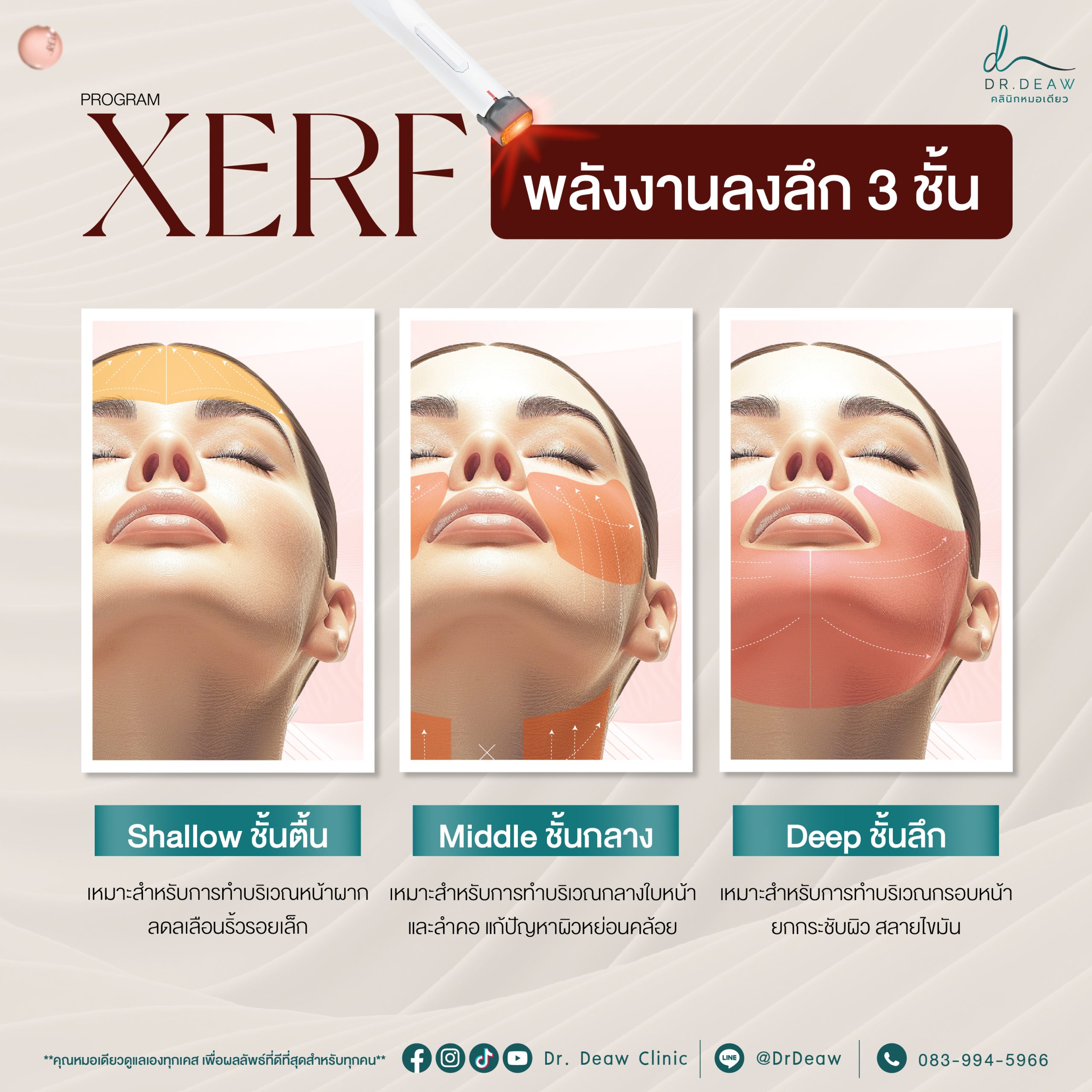 แม้ว่า XERF จะเป็นเทคโนโลยียกกระชับรุ่นใหม่ แต่สิ่งที่สำคัญไม่แพ้ตัวเครื่อง คือการประเมินใบหน้าและประสบการณ์ของผู้ดูแลรักษา พลังงาน RF ต้องถูกปรับให้เหมาะกับโครงสร้างใบหน้าและระดับความหย่อนคล้อยของแต่ละบุคคล หากตั้งค่าพลังงานไม่เหมาะสม อาจไม่ได้ผลลัพธ์ตามที่ต้องการ